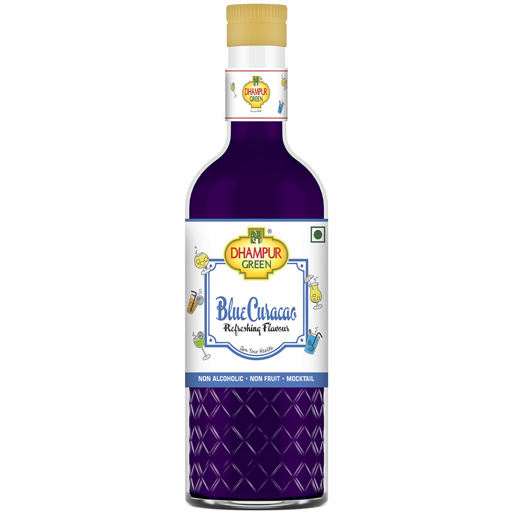 Tempting tropical Blue Curacao, inspired by the namesake liqueur, conjures the colour of tropical blue skies on the island of curacao. Ravishing to look at, this syrup makes drinks tempting you to dive into the tropical blue waters or lounge blissfully on a hammock on your Caribbean resort! The sweet-bitter, and tangy flavor of Dhampur Green Blue Curacao Syrup adds zest to any celebration or beverage. Its deep blue color makes it perfect with fruit beverages, mixers, soda or water. Renovate your ordinary drink with this mildly orange flavor and vivid blue colour drink! Though it is alcohol-free, you and your drink will become life of the party!