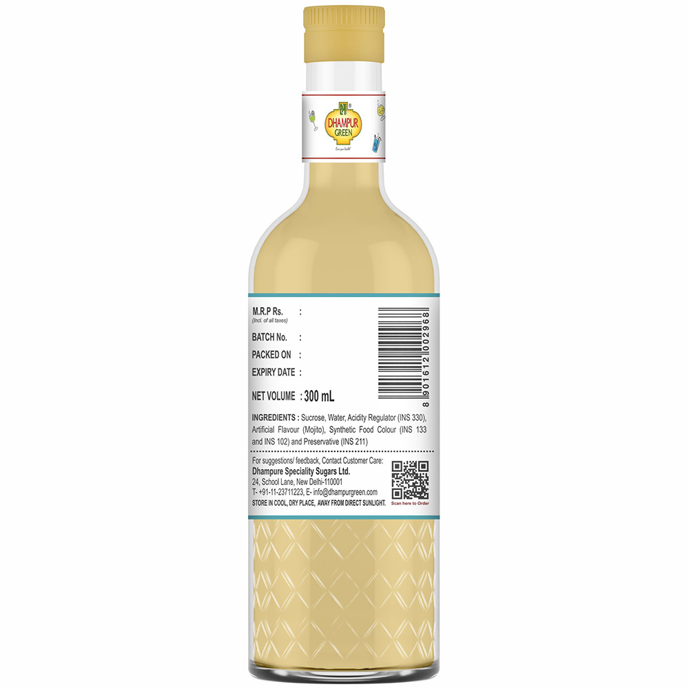 With its distinctly deep green color, Dhampur Green Mojito Syrup blends well into smoothies, sodas, cocktails and teas. The famous Havana- born Mojitos, that used to be the refreshing cocktail sensation of Cuban nightlife, have dominated the international bar scene. The versatile Dhampur Green Mojito Syrup is integral to any and every mojito! Just combine with rum, club soda and a squeeze of lime, and your mojito is ready!