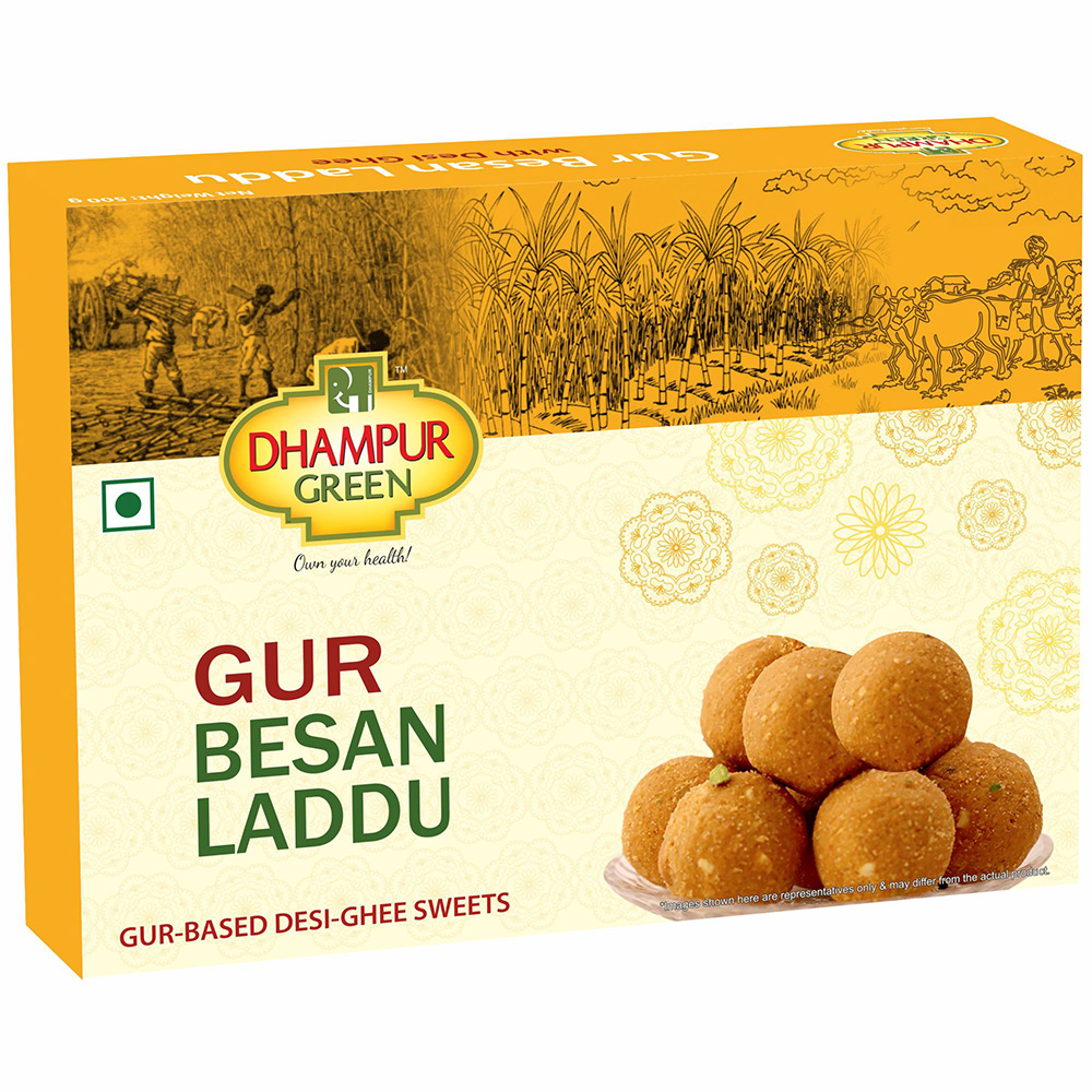 Dhampur gur besan laddu is the premium and exclusive range from the House of Dhampur. Our indulgent and aspirational range made from the finest ingredients such as gur, besan and some dry fruits, we cater to an audience of evolved and varied tastes while remaining true to Dhampur core values of trust and quality