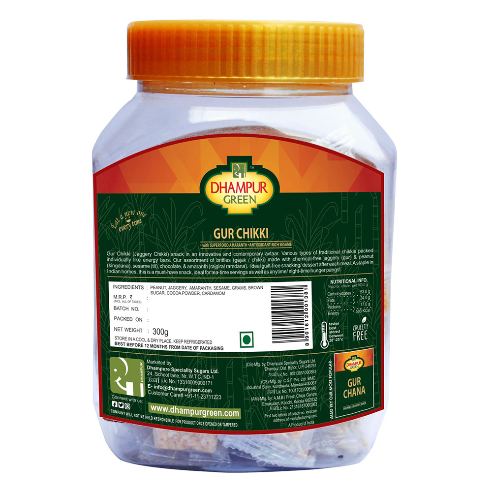 Gur Chikki (Jaggery Chikki) is a traditional snack in an innovative and contemporary avtaar. Various types of traditional chikkis are packed individually like energy bars. Our assortment of brittles (gajak / chikki) are made with chemical-free jaggery (gur) & peanut (singdana), sesame (till), chocolate & amaranth (rajgira/ramdana). Ideal guilt-free snacking/ dessert after each meal. A staple in Indian homes, this is a must-have snack, ideal for tea-time servings as well as anytime/ night-time hunger pangs!