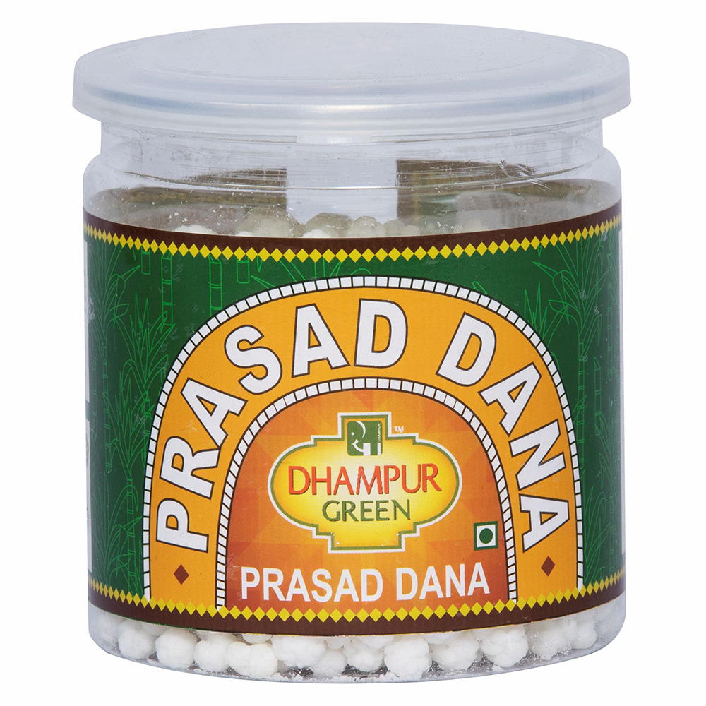 Prasad Dana (also called Gol Dana/ Ram Dana/ Nakul Dana) are small, pretty, softly-crunchy sugar drops, without any impurity. These little drops of sugar are heavenly in taste & used as Prasad offering in temples/ home, or eaten with rice flakes as a healthy snack. Prasad Dana comes sealed in airtight containers to retain crispness and hygiene.
