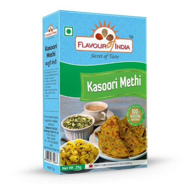 The pack contains premium quality fine grounded pure Flavour of India –Kasoori Methi. Hygienically handled, processed and packed to give refreshing aroma and taste.