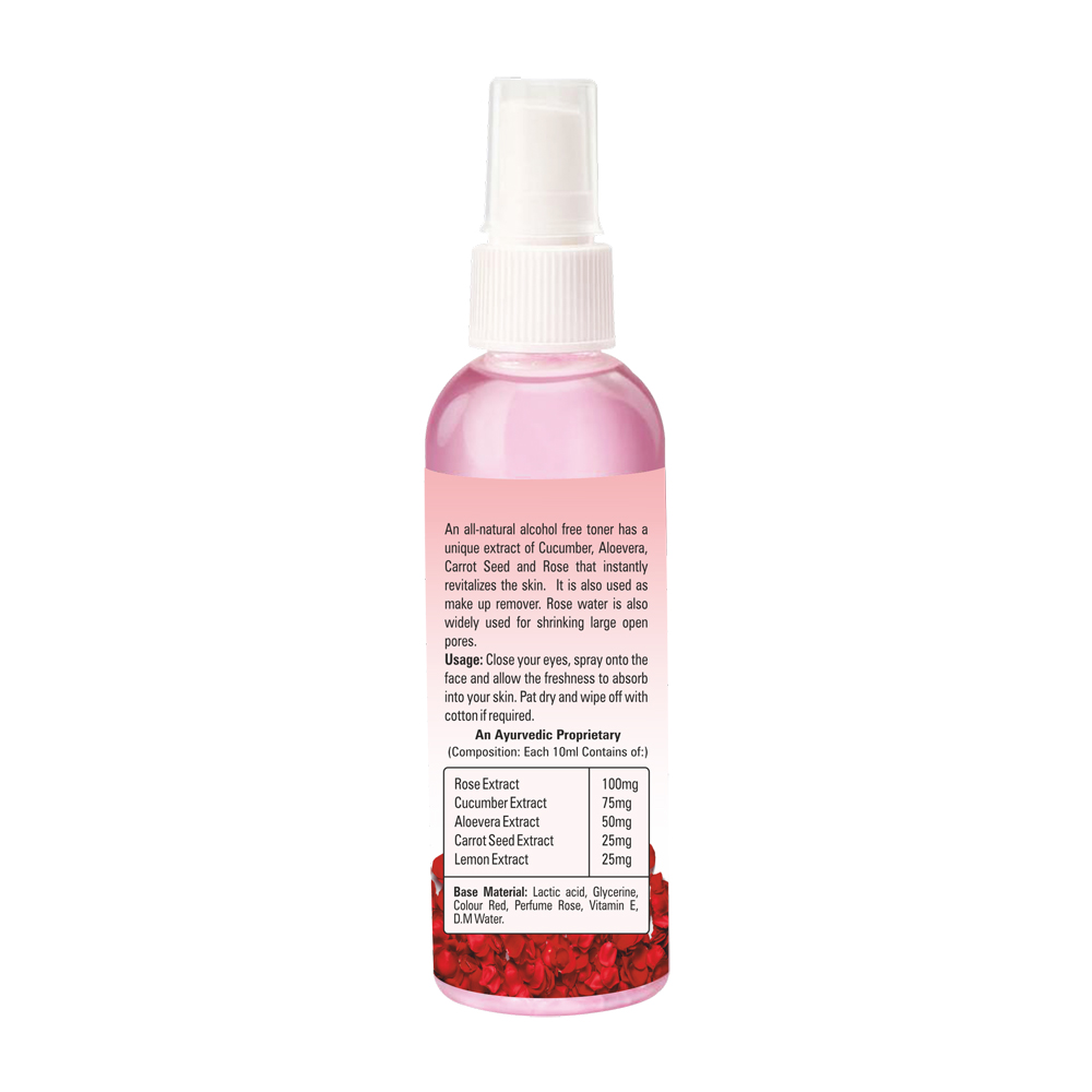 An Ayurvedic Proprietary (Composition: Each 10ml Contains of) : Rose Extract 100mg, Cucumber Extract 75mg, Aloevera Extract 50mg, Carrot Seed Extract 25mg, Lemon Extract 25mg.