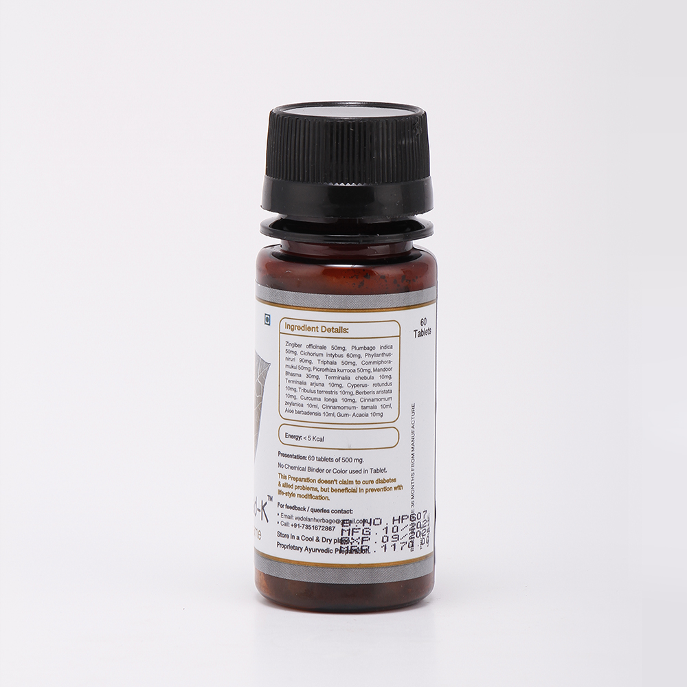 Triphala, ChitrakMool, Kutki, Neem, Mandoor bhasma, Guggul. Pancreomed–K corrects liver